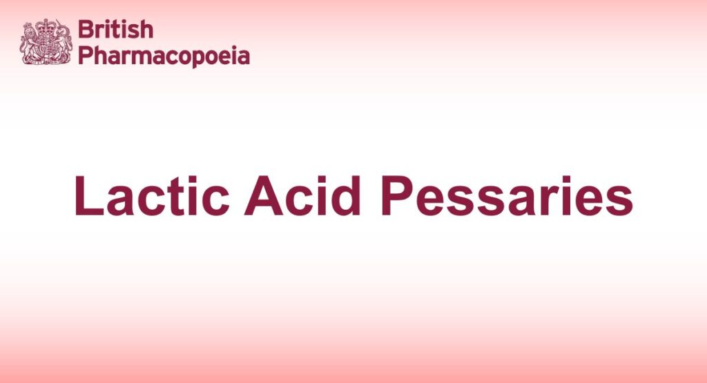 Lactic Acid Pessaries are moulded pessaries containing Lactic Acid in a suitable basis.