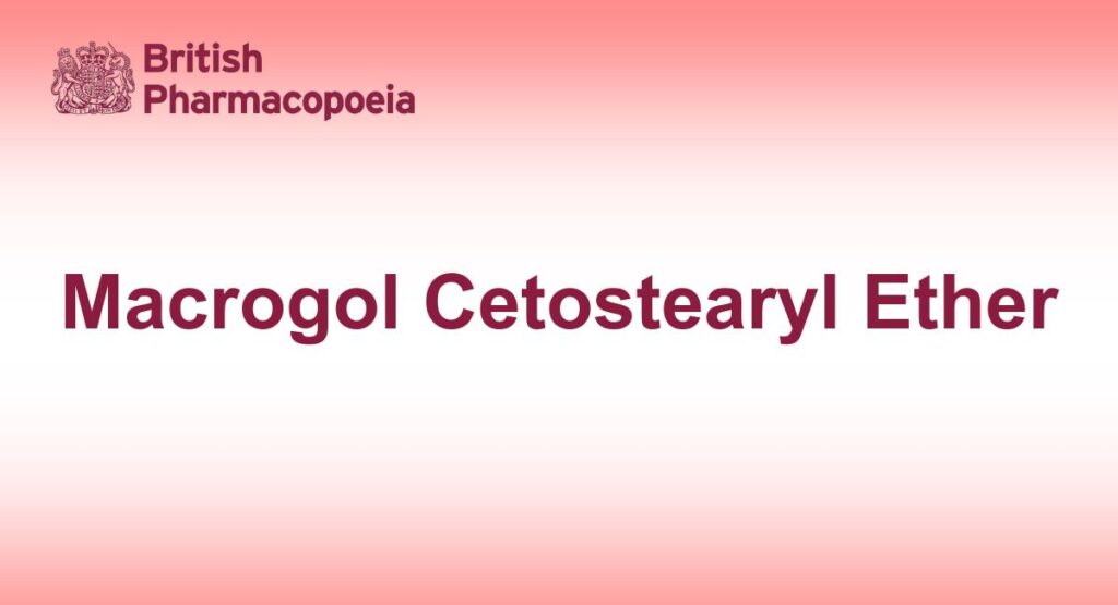 Mixture of ethers of mixed macrogols with linear fatty alcohols, mainly cetostearyl alcohol. It may contain some free macrogols and it contains various amounts of free cetostearyl alcohol. The number of moles of ethylene oxide reacted per mole of cetostearyl alcohol is 2 to 33 (nominal value).