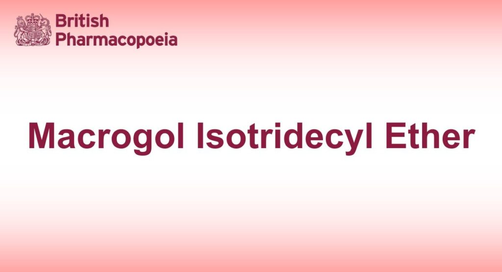 Mixture of ethers of mixed macrogols with linear and branched fatty alcohols, mainly C₁₃H₂₈O. It contains a variable quantity of free C₁₃H₂₈O and it may contain free macrogols. The number of moles of ethylene oxide reacted per mole of branched C₁₃H₂₈O is 3 or 4 (nominal value).