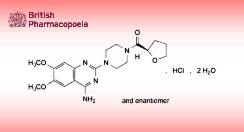 [4-(4-Amino-6,7-dimethoxyquinazolin-2-yl)piperazin-1-yl][(2RS)-oxolan-2-yl]methanone hydrochloride dihydrate.Content