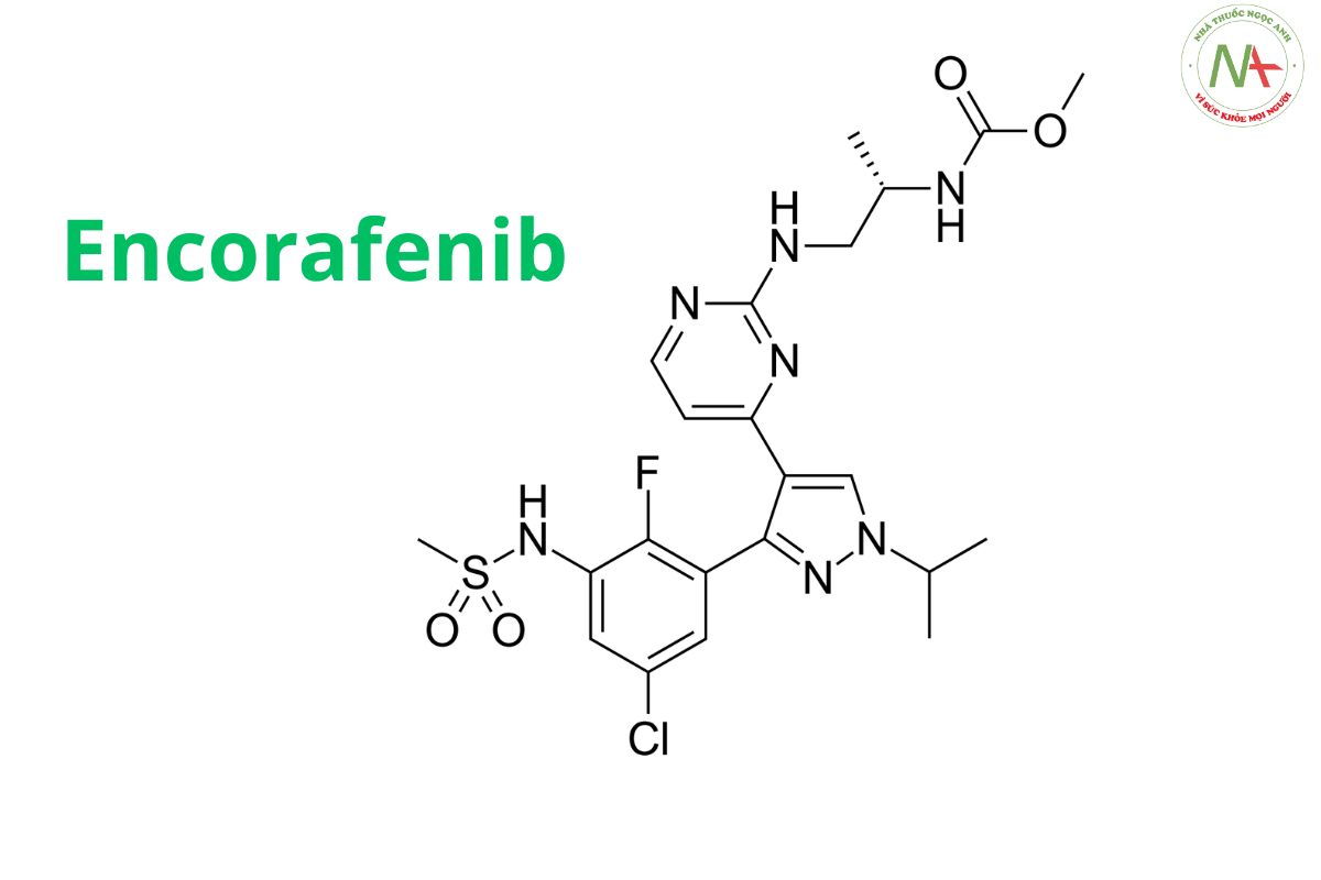 - Encorafenib được chỉ định điều trị cho bệnh nhân trưởng thành bị ung thư phổi không phải tế bào nhỏ di căn có đột biến BRAF V600E, u hắc tố không thể cắt bỏ hoặc di căn có đột biến BRAF V600E hoặc V600K kết hợp với binimetinib