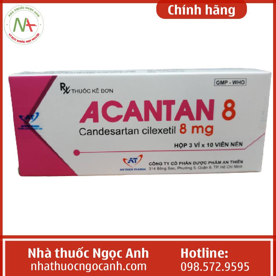 Acantan 8 là một sản phẩm của công ty cổ phần Dược phẩm An Thiên, là thuốc dùng trong điều trị huyết áp tăng và suy tim