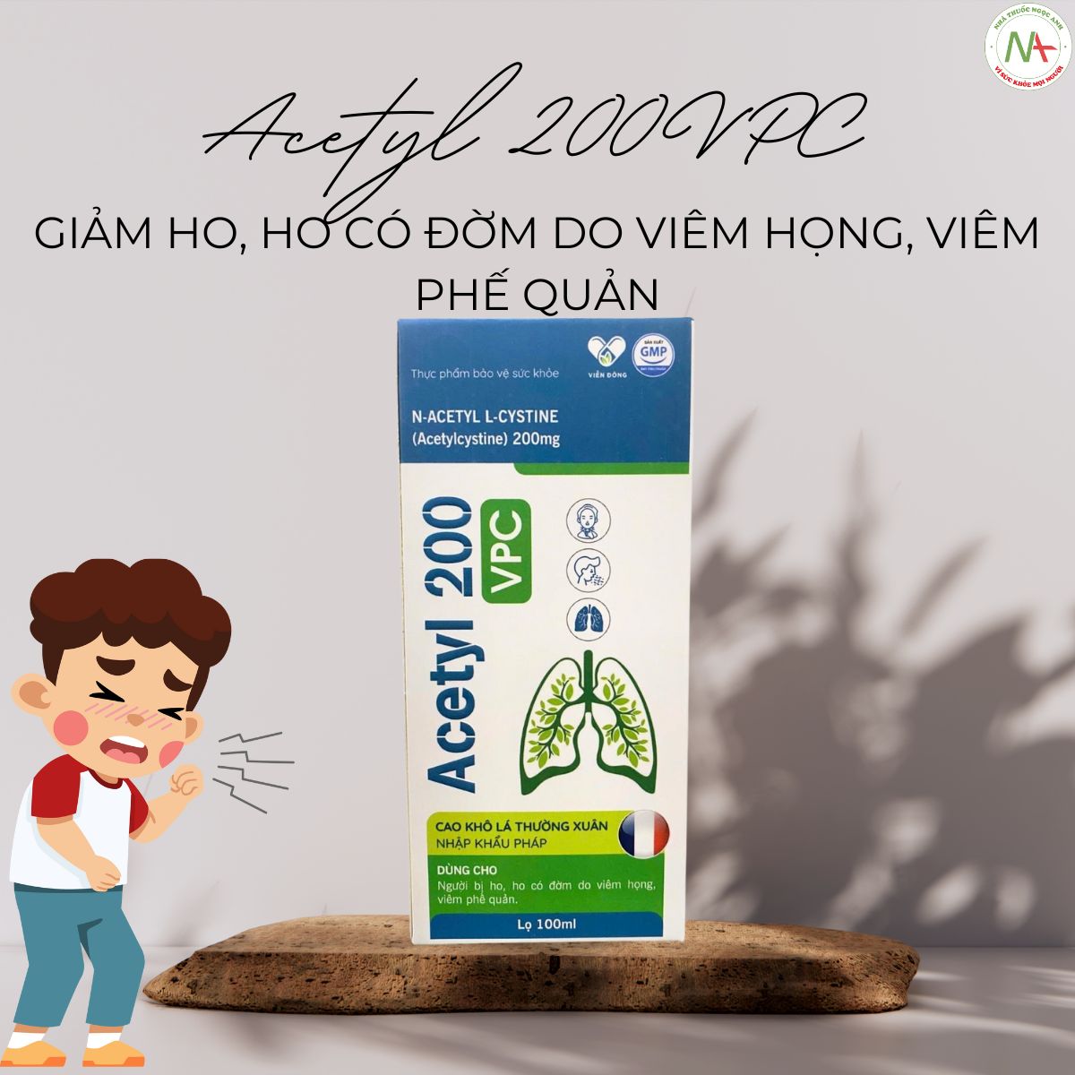 Dung dịch uống Acetyl 200 VPC có công dụng cải thiện triệu chứng ho, ho có đờm do viêm họng, viêm phế quản