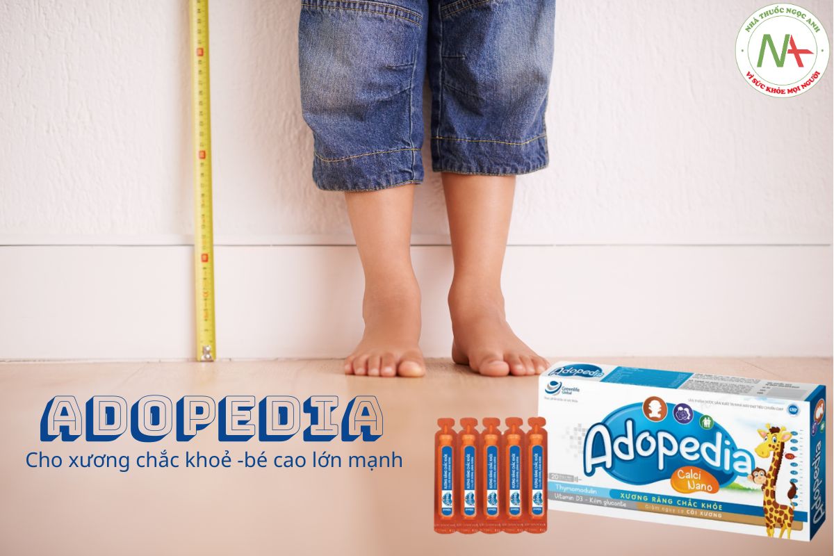 - Adopedia là sản phẩm hỗ trợ bổ sung canxi và vitamin, không thể thay thế các thuốc chữa trị về bệnh thiếu vitamin và khoáng chất liên quan