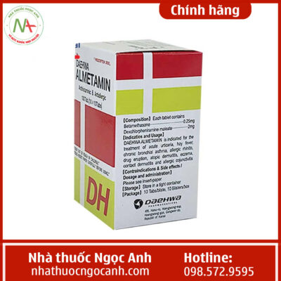 Thuốc Almetamin ngày càng được sử dụng nhiều trong kê đơn để điều trị các bệnh về dị ứng hô hấp và ngoài da. Vậy Almetamin là thuốc gì? Giá bao nhiêu? Cách sử dụng như thế nào để đạt hiệu quả cao? Hãy cùng Nhà thuốc Ngọc Anh (nhathuocngocanh.com) tìm hiểu rõ hơn về các thông tin liên quan đến thuốc Almetamin trong bài viết dưới đây nhé!
