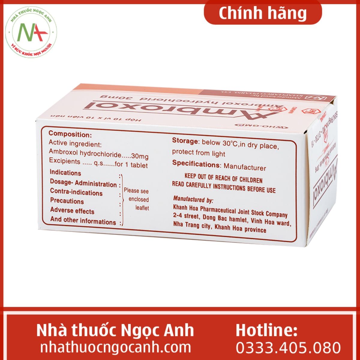 Ambroxol 30mg Khapharco có chứa các thành phần: