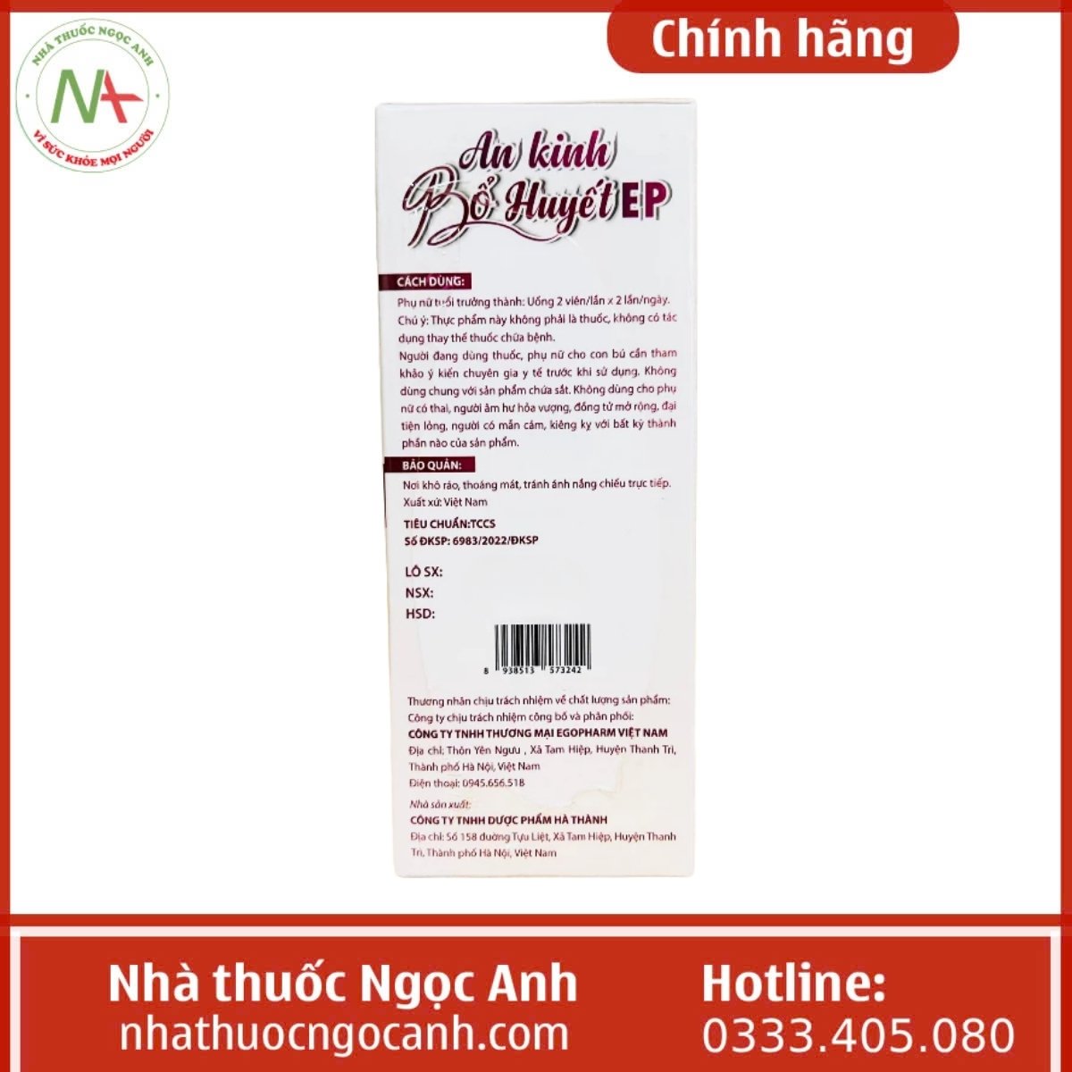 - Sản phẩm An Kinh Bổ Huyết EP không phải là thuốc, không thể thay thế thuốc chữa bệnh.