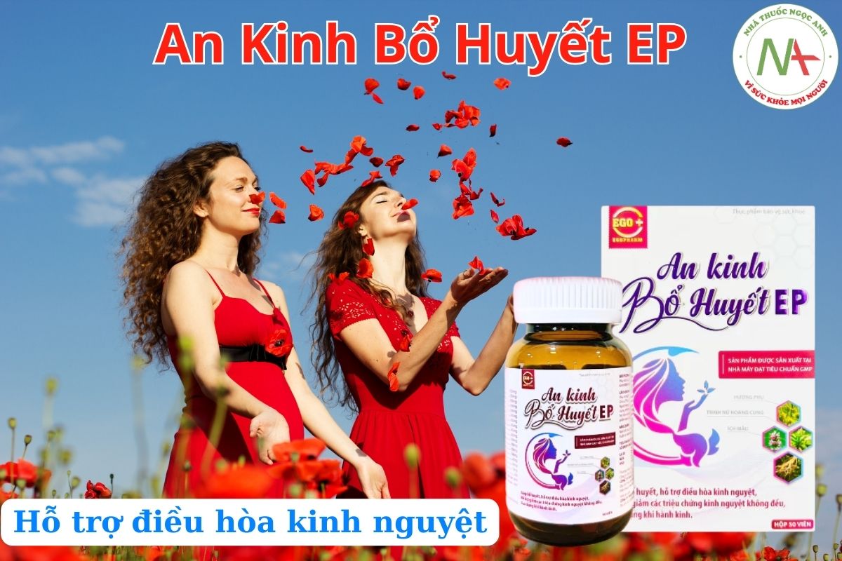 Sản phẩm An Kinh Bổ Huyết EP giúp bổ huyết, điều hòa kinh nguyệt, giảm các triệu chứng kinh nguyệt không đều và đau bụng khi hành kinh. Sản phẩm hỗ trợ cải thiện sức khỏe sinh lý nữ và giúp giảm các triệu chứng khó chịu trong chu kỳ kinh nguyệt.