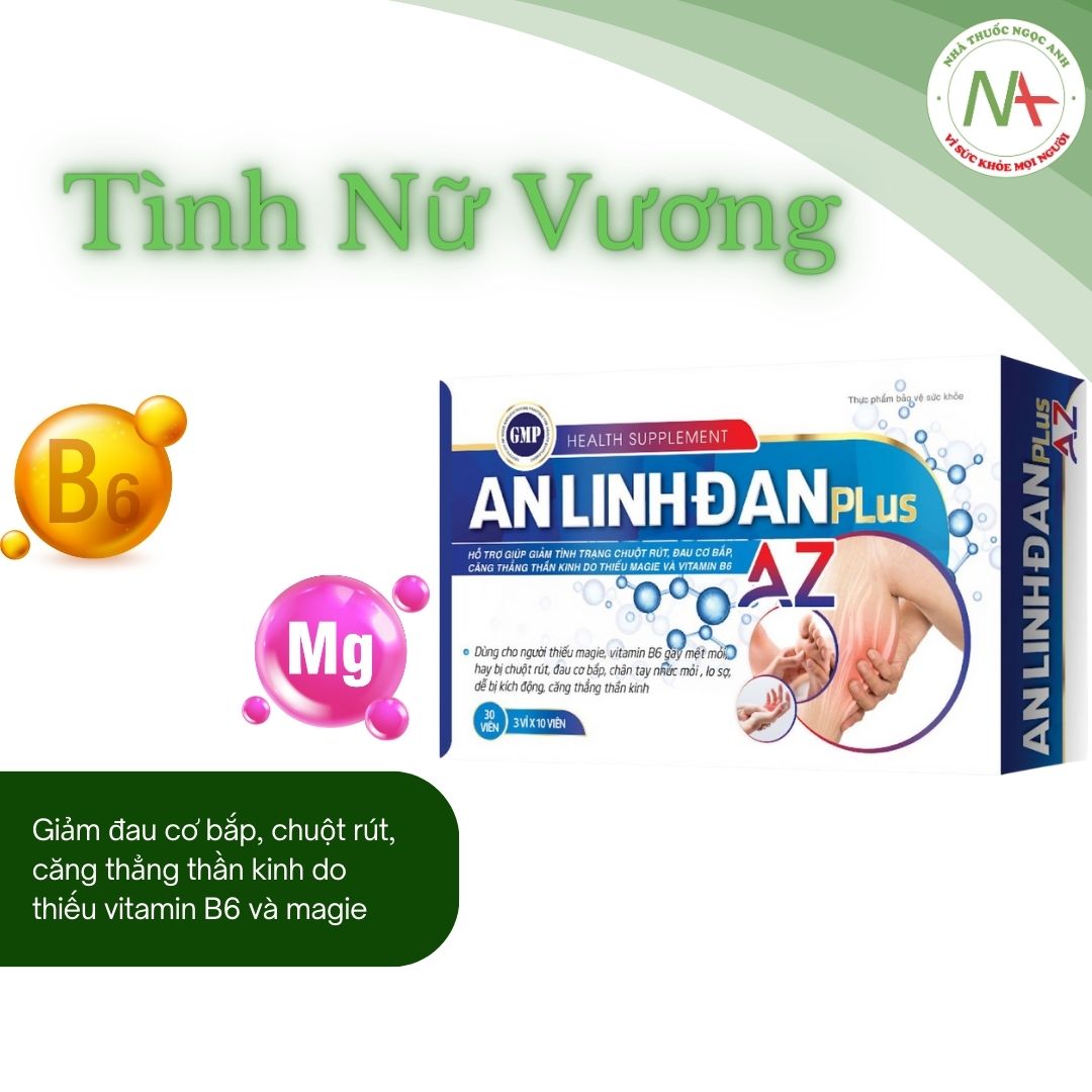 An Linh Đan Plus AZ có tác dụng giảm tình trạng đau cơ bắp, chuột rút, căng thẳng thần kinh do thiếu vitamin B6 và magie