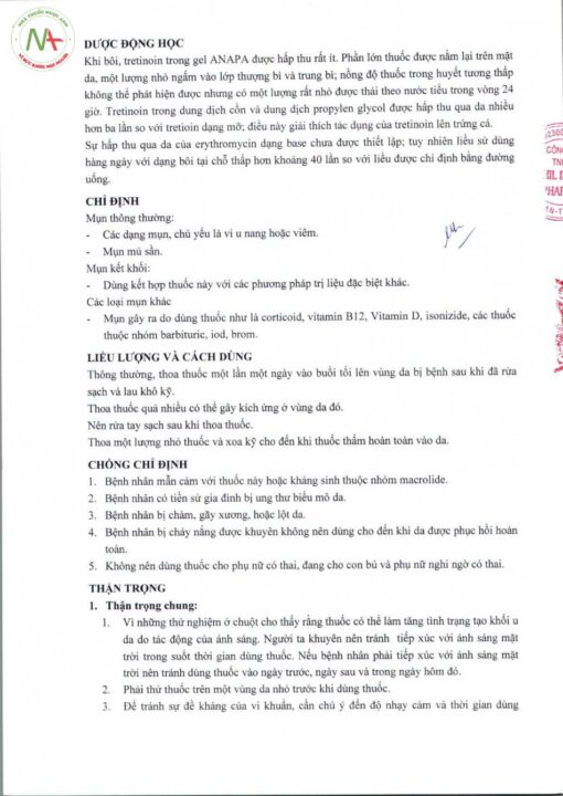- Anapa 20g với hoạt chất Tretinoin đã rất quen thuộc với người bị mụn trứng cá nhờ tác dụng của thuốc mang lại. Thuốc đã được thử nghiệm đầy đủ, đảm bảo độ an toàn trước khi được cấp phép lưu hành trên thị trường