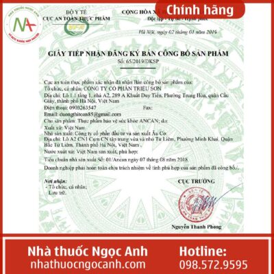 Nhà sản xuất: Công ty cổ phần dược phẩm đầu tư và sản xuất Âu Cơ.