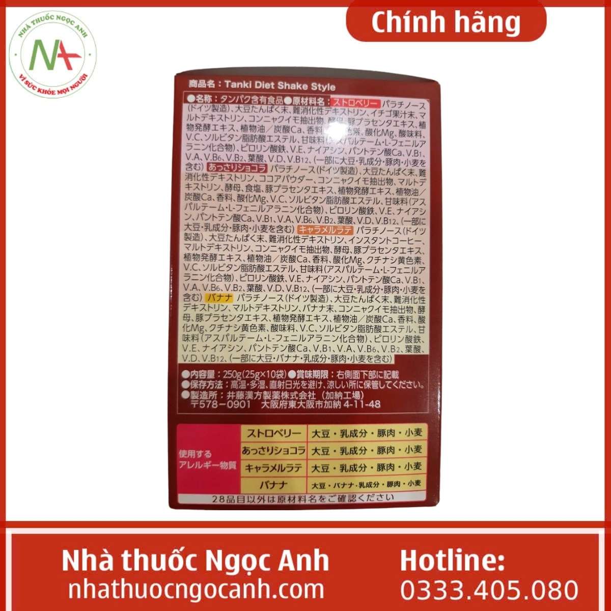 Hiện nay, Anna de Rita Tanki Diet Shake Style có sẵn tại Nhà thuốc Ngọc Anh, nơi luôn cam kết chất lượng và sẵn sàng tư vấn cho khách hàng.