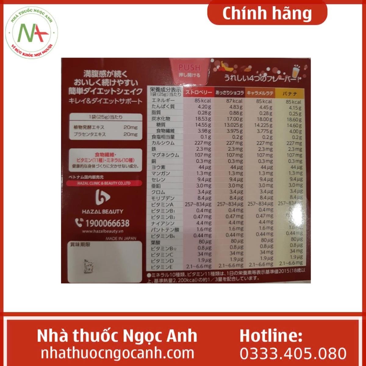 Thành phần trong 1 gói bột Anna de Rita Tanki Diet Shake Style gồm: