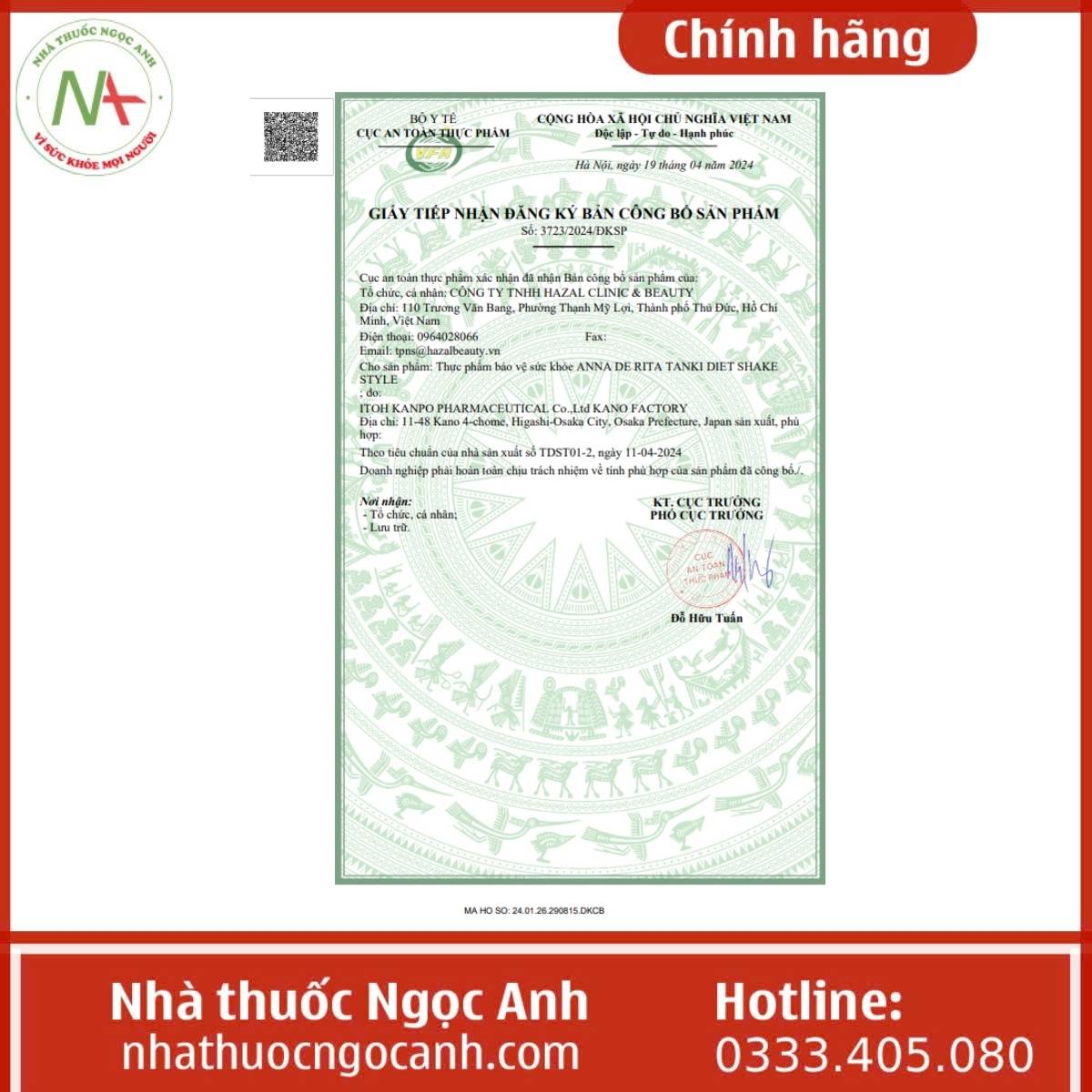 - Số đăng ký: 3723/2024/ĐKSP
