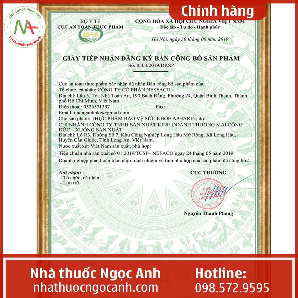 - Sản phẩm Apharin không phải là thuốc, không có tác dụng thay thế thuốc chữa bệnh.