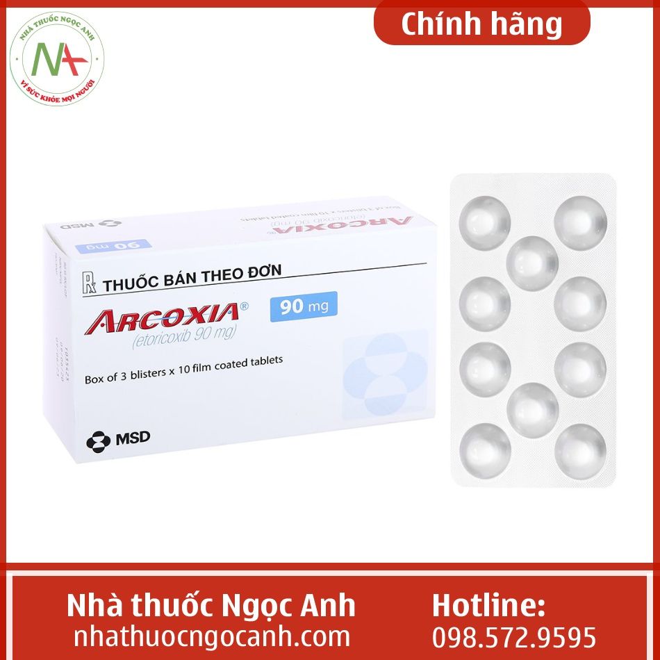 - Thuốc Arcoxia 90mg hay Etoricoxib 90mg là nhóm thuốc điều trị viêm khớp/giảm đau ức chế cyclooxygenase-2 (COX-2) có tính chọn lọc cao.