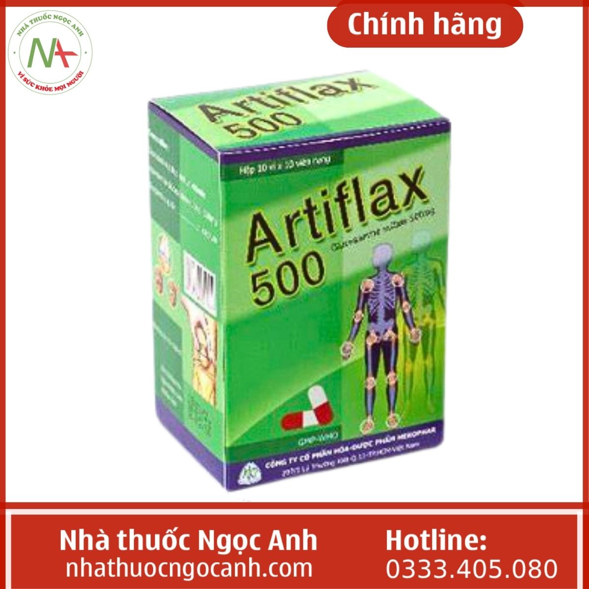 Thuốc Artiflax 500 được sử dụng để tăng sản sinh dịch nhầy khớp và dùng cho các bệnh nhân bị thoái hoá khớp gối khi có chỉ định của bác sĩ. Thuốc được đóng gói theo quy cách là hộp có 10 vỉ đóng trong túi nhôm, mỗi vỉ có 10 viên nang cứng được sản xuất bởi Công ty Cổ phần Hoá – Dược phẩm Mekophar và được cấp phép lưu hành tại Việt Nam bởi Bộ Y tế với số đăng ký VD-17666-12.