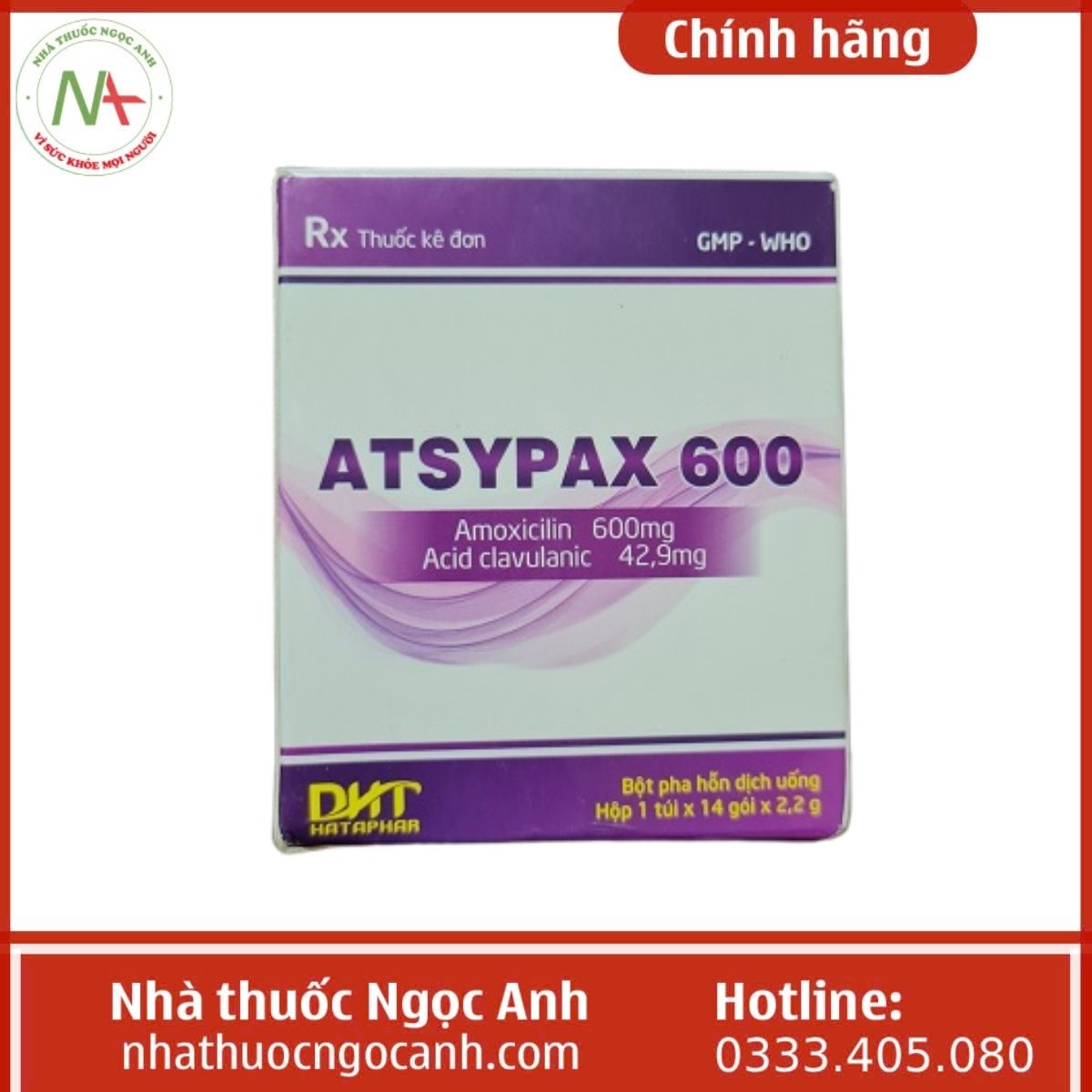 - Liều thuốc Atsypax 600 được xác định dựa trên hàm lượng amoxicillin trong thuốc. Không nên sử dụng thuốc kéo dài quá 14 ngày mà không tái khám.