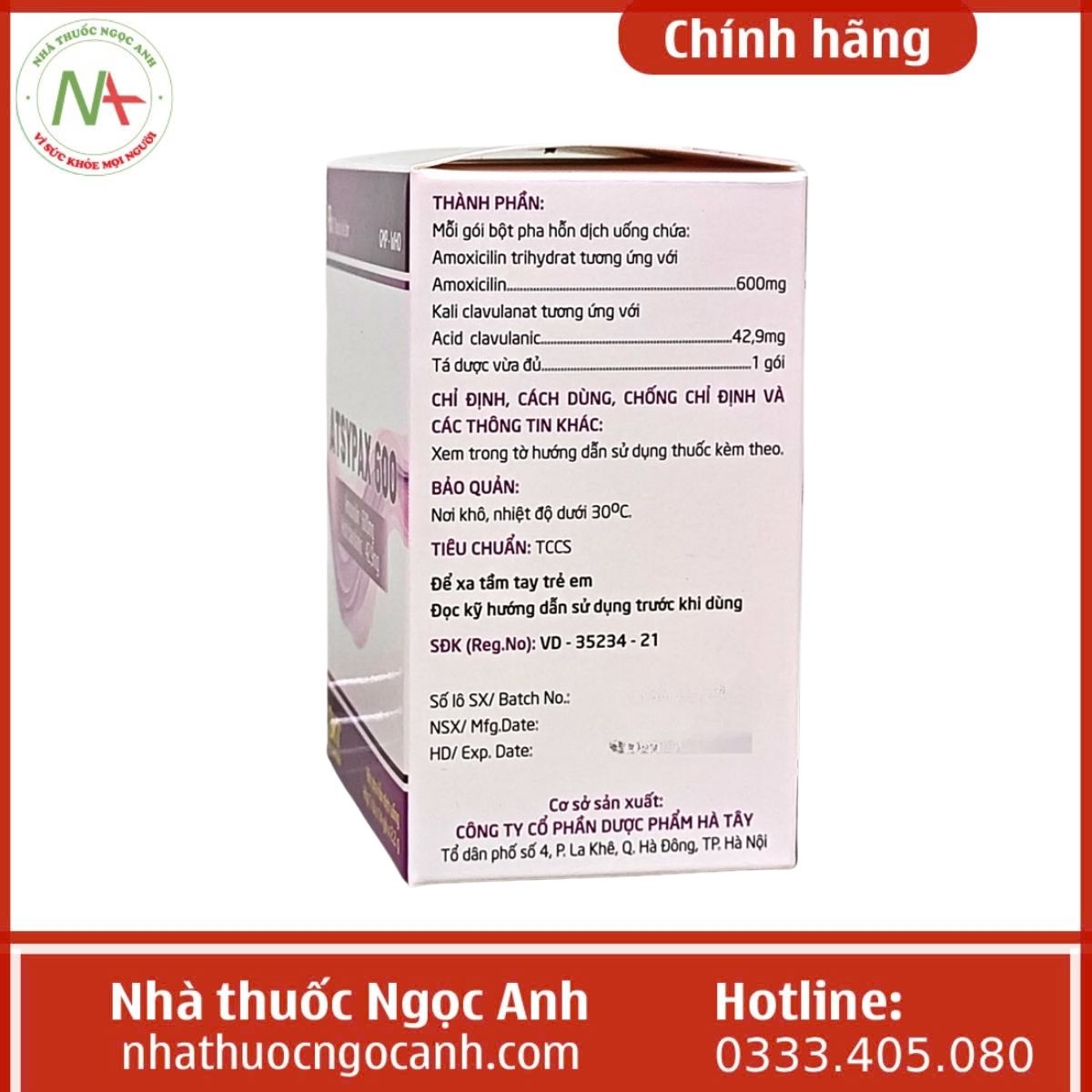 - Nhà sản xuất: Công ty Cổ phần Dược phẩm Hà Tây