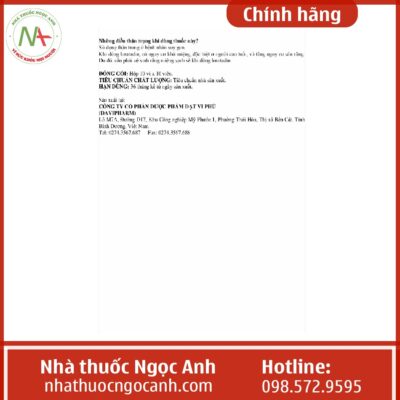 - Thuốc được sản xuất bởi công ty dược phẩm Đạt Vi Phú, Việt Nam- 1 công ty lớn vô cùng uy tín được sản xuất trên công nghệ dây chuyền hiện đại. Công ty được Bộ Y Tế kiểm định và đánh giá là một trong những công ty chất lượng tốt. Nên người dùng có thể hoàn toàn tin tưởng sử dụng.