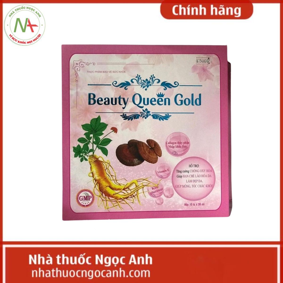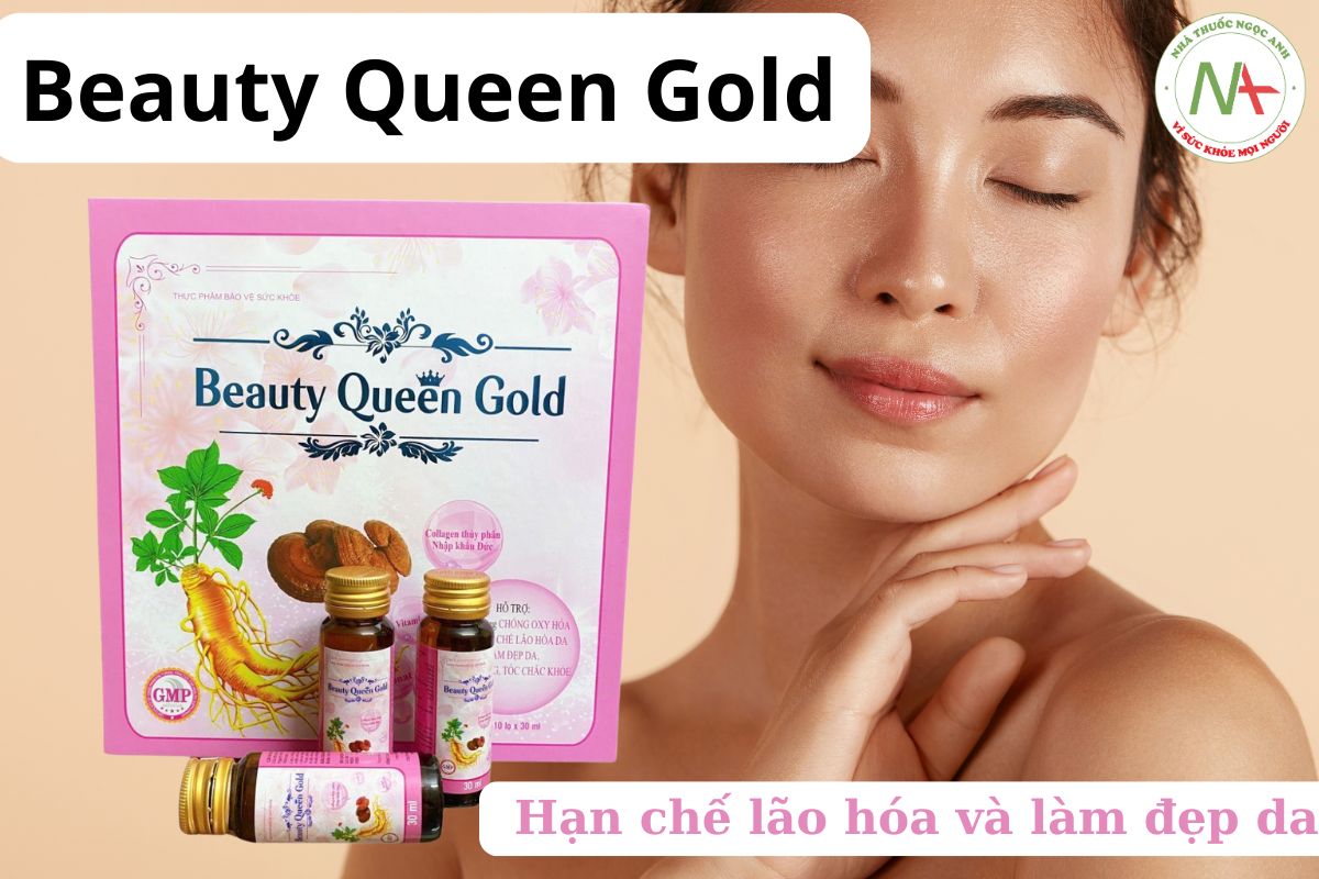 Beauty Queen Gold có tác dụng bổ sung hyaluronic acid, collagen và vitamin E giúp hỗ trợ chống oxy hóa, hạn chế lão hóa và làm đẹp da, hỗ trợ tóc và móng chắc khỏe