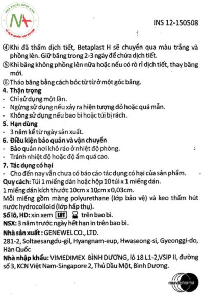 - Tờ hướng dẫn sử dụng Betaplast H. tải về tại đây.