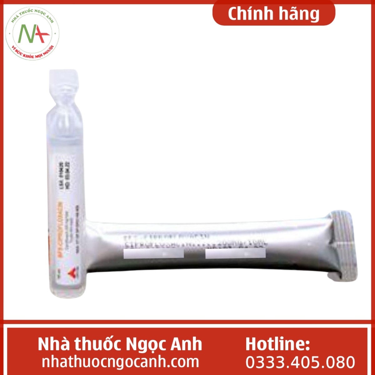 Mỗi ống nhựa đựng 10ml dung dịch thuốc BFS-Ciprofloxacin 200mg/10ml được bọc riêng trong túi nhôm kín.