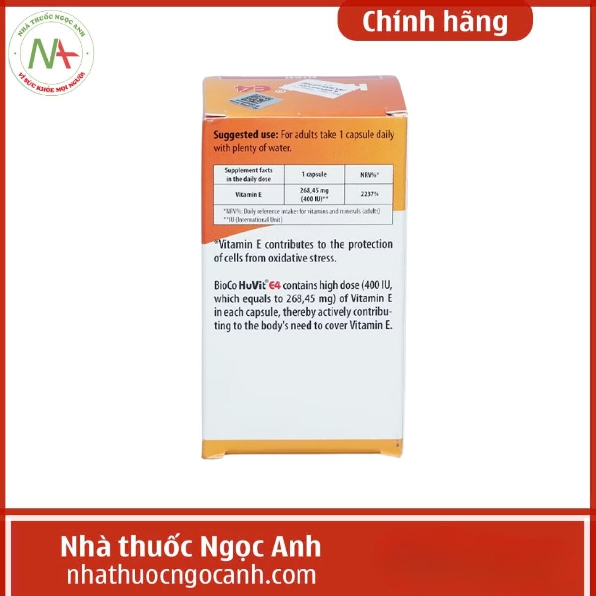 Hiện nay, BioCo HuVit® E4 đang được bán tại Nhà thuốc Ngọc Anh, nhà thuốc luôn đảm bảo chất lượng và sẵn sàng tư vấn cho người dùng.