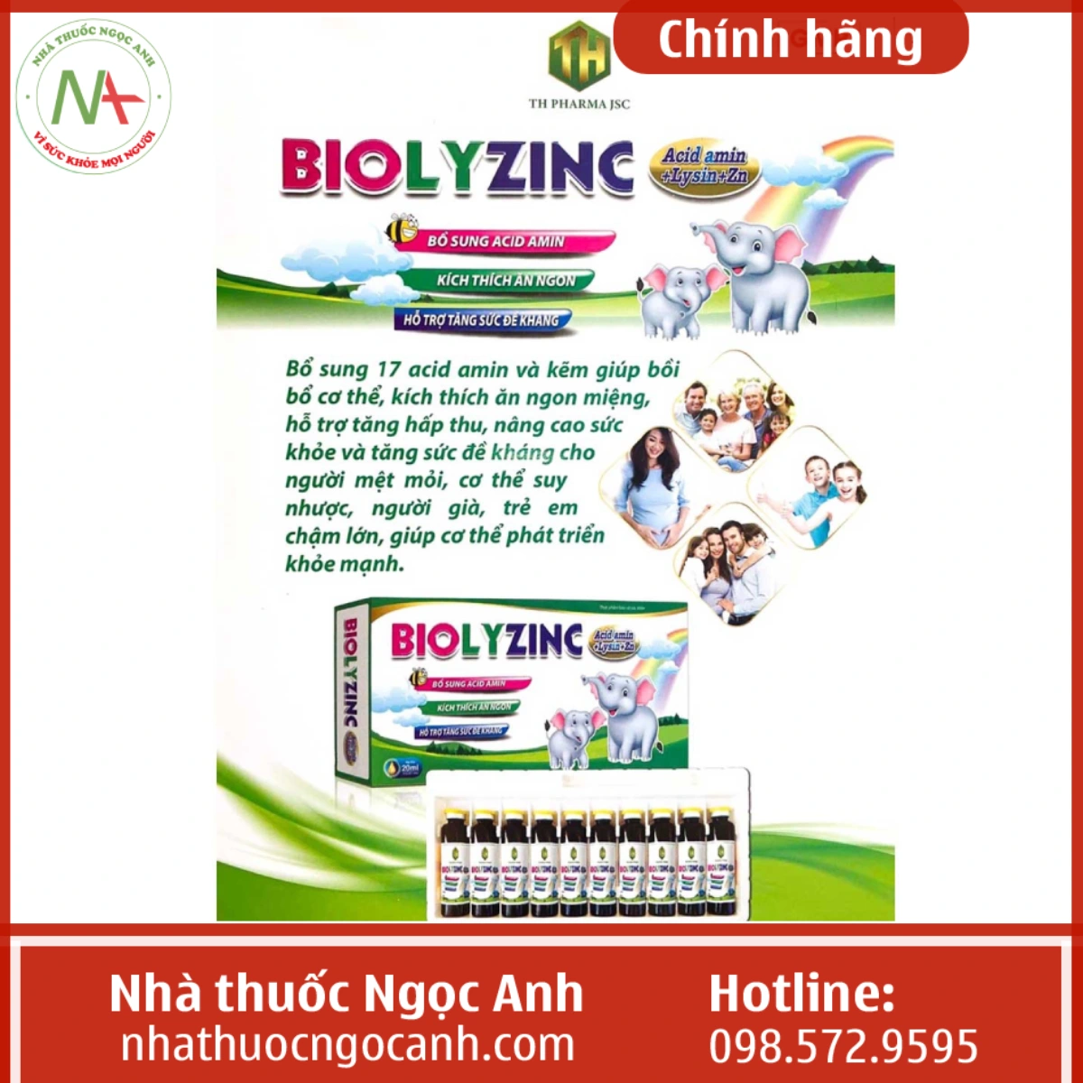 Sản phẩm Biolyzinc TH Pharma với hàm lượng acid amin và Kẽm đáng kể, hứa hẹn mang đến những lợi ích sức khỏe đa dạng, bao gồm: