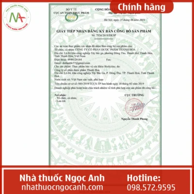 - Công ty đăng kí: được đăng kí bởi Công ty CP Dược Phẩm Thanh Hoa.