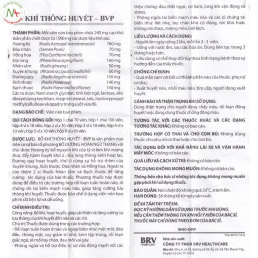 Thuốc Bổ Khí Thông Huyết BVP giá bao nhiêu?