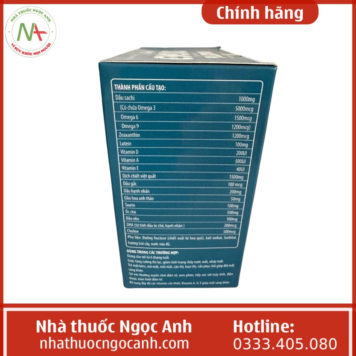- Ngoài ra các thành phần DHA, Choline, Óc chó cũng giúp tăng cường thị giác, dưỡng mắt, giảm khô mắt.