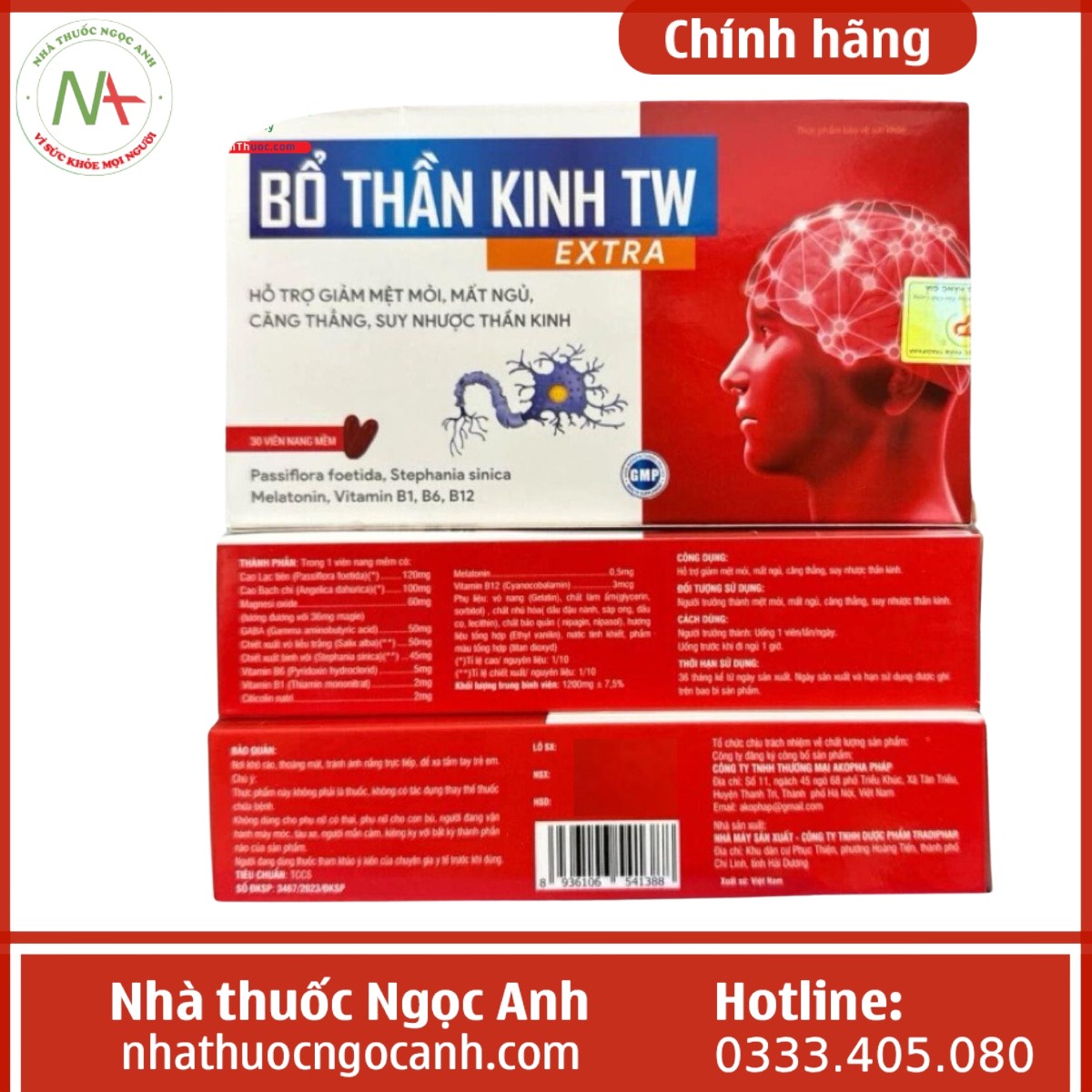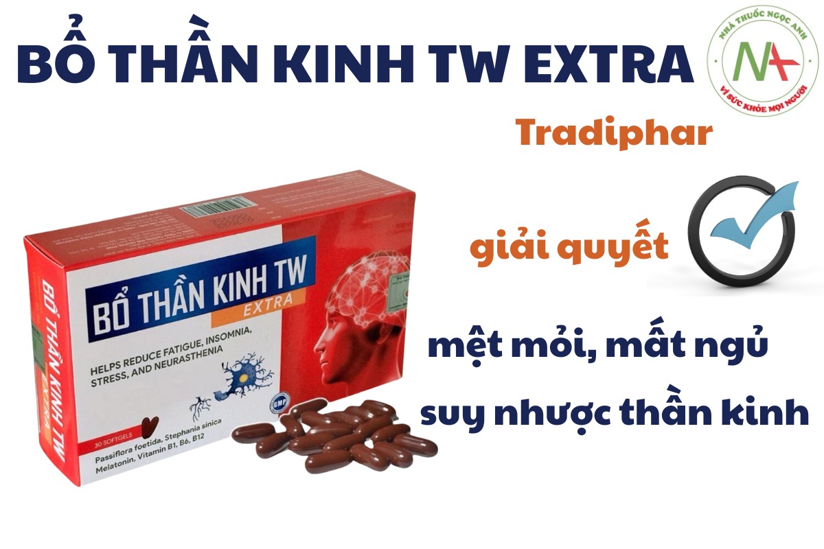 Sản phẩm Bổ thần kinh TW Extra Tradiphar không phải là thuốc, không có tác dụng thay thế thuốc chữa bệnh.