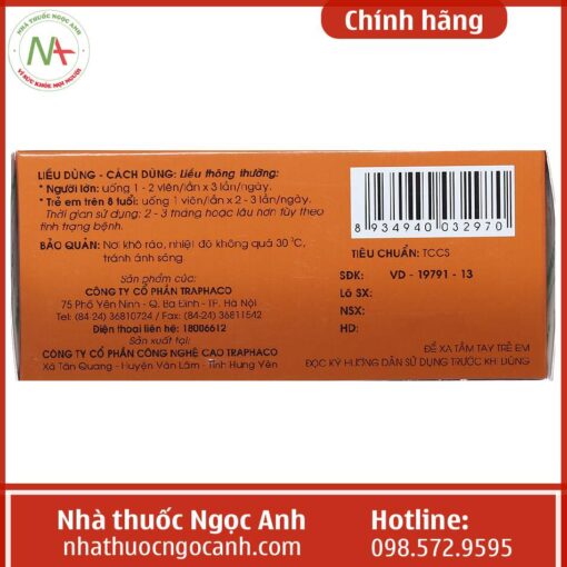 Liều dùng dành cho trẻ em ngoài 8 tuổi: mỗi lần uống 1 viên, chia làm 2 – 3 lần trong ngày.