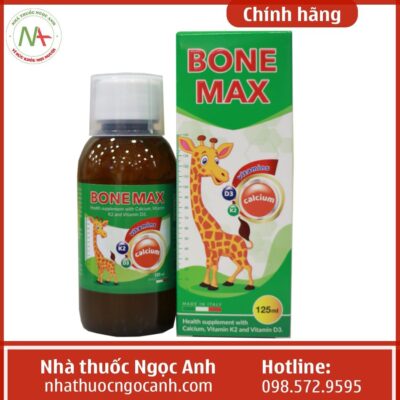 Bone Max siro là sản phẩm được nhập khẩu từ Ý và có công dụng bổ sung canxi và vitamin D cho những người thiếu hụt đặc biệt ở phụ nữ mang thai và cho con bú, tăng cường sự chắc khỏe xương và răng.
