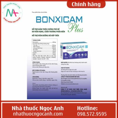 Trên thị trường có nhiều loại sản phẩm giúp giảm sưng tấy, giảm đau do viêm, giảm phù nề. Trong đó sản phẩm Bonxicam Plus là sản phẩm phổ biến được nhiều bác sĩ tin tưởng sử dụng. Hãy cùng Nhà thuốc Ngọc Anh (nhathuocngocanh.com) tìm hiểu kỹ hơn các thông tin liên quan đến Bonxicam Plus.