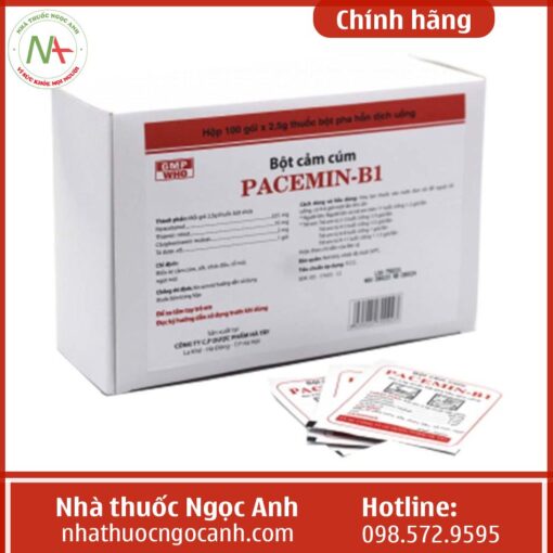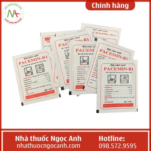 Bột cảm cúm Pacemin-B1 là thuốc được bào chế dạng bột pha hỗn dịch uống được dùng chỉ định trong điều trị sốt, nhức đầu, cảm cúm,…. Bài này Nhà thuốc Ngọc Anh xin được trả lời cho bạn các câu hỏi: Bột cảm cúm Pacemin-B1 là thuốc gì? Bột cảm cúm Pacemin-B1 có tác dụng gì? Bột cảm cúm Pacemin-B1 giá bao nhiêu? Dưới đây là thông tin chi tiết.