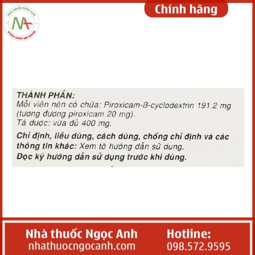 ==>> Xem thêm thuốc: Feldene dispersible 20mg công dụng, liều dùng, giá bán