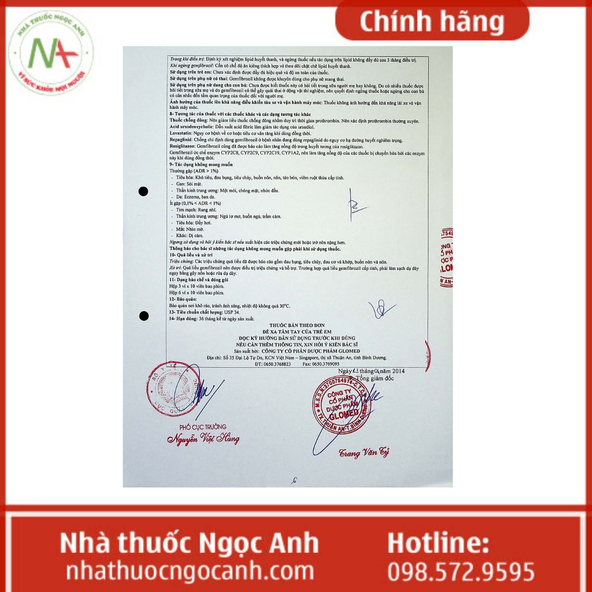 - Hoạt chất Gemfibrozil với hàm lượng 600mg.