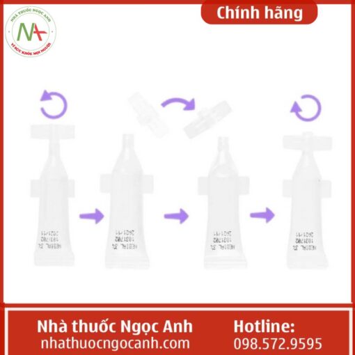 - Cách dùng Isonebial Flaconcini: Lấy 1 tép nhỏ, làm ấm trong lòng bàn tay khoảng 1-2 phút, sau đó mở bằng cách vặn nhẹ đầu ống.