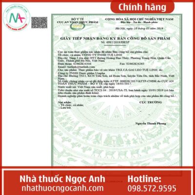 Trên đây là những thông tin về thực phẩm bảo vệ sức khỏe Cà gai leo Tuệ Linh. Bạn có thể tham khảo và nếu có thắc mắc thêm hãy liên hệ với nhà thuốc Ngọc Anh để được tư vấn kỹ càng hơn qua website của nhà thuốc.