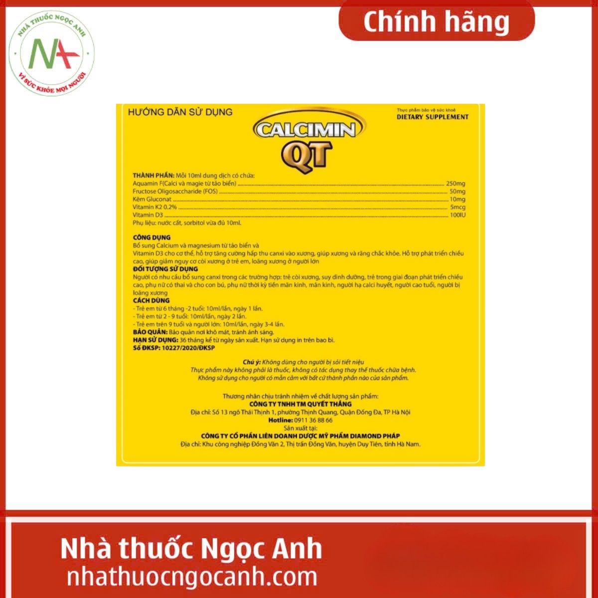 - Sản phẩm Calcimin QT không phải là thuốc và không có tác dụng thay thế thuốc chữa bệnh.