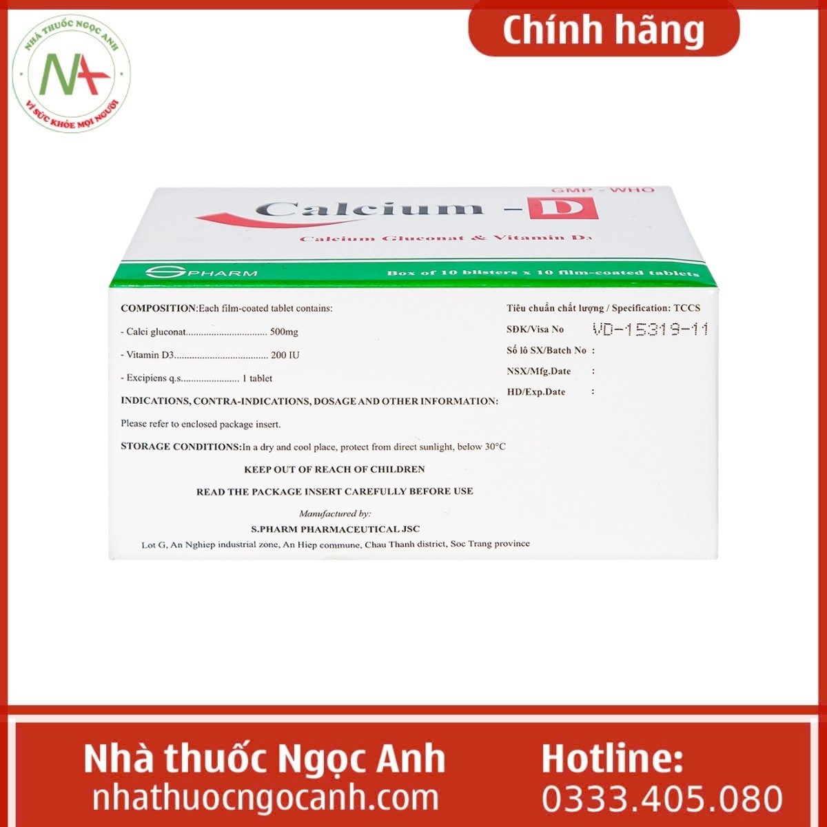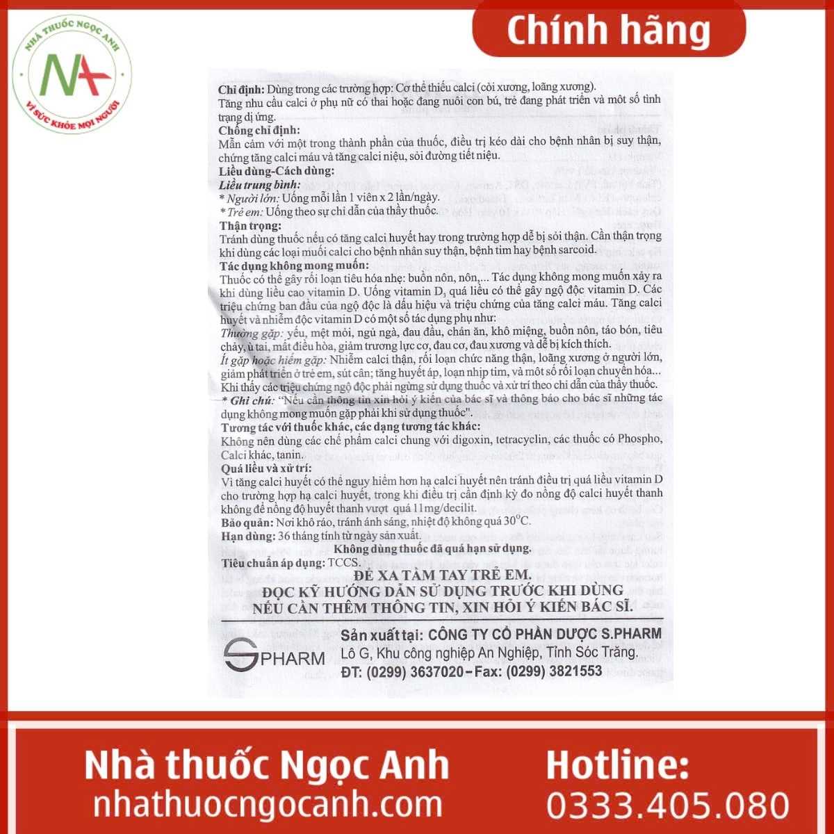 Mỗi viên Calcium – D S.Pharm có chứa các thành phần bao gồm: