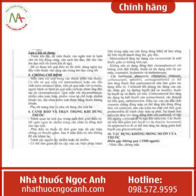 - Metronidazole với hàm lượng 225mg.