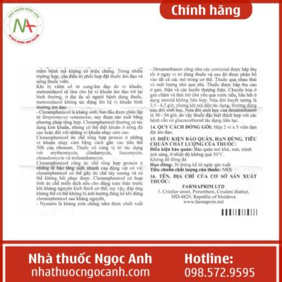 - Chloramphenicol với hàm lượng 100mg.