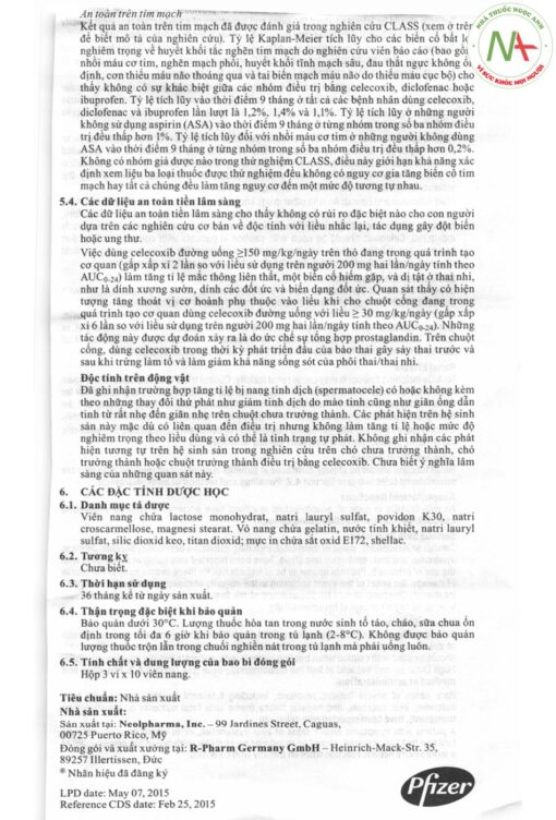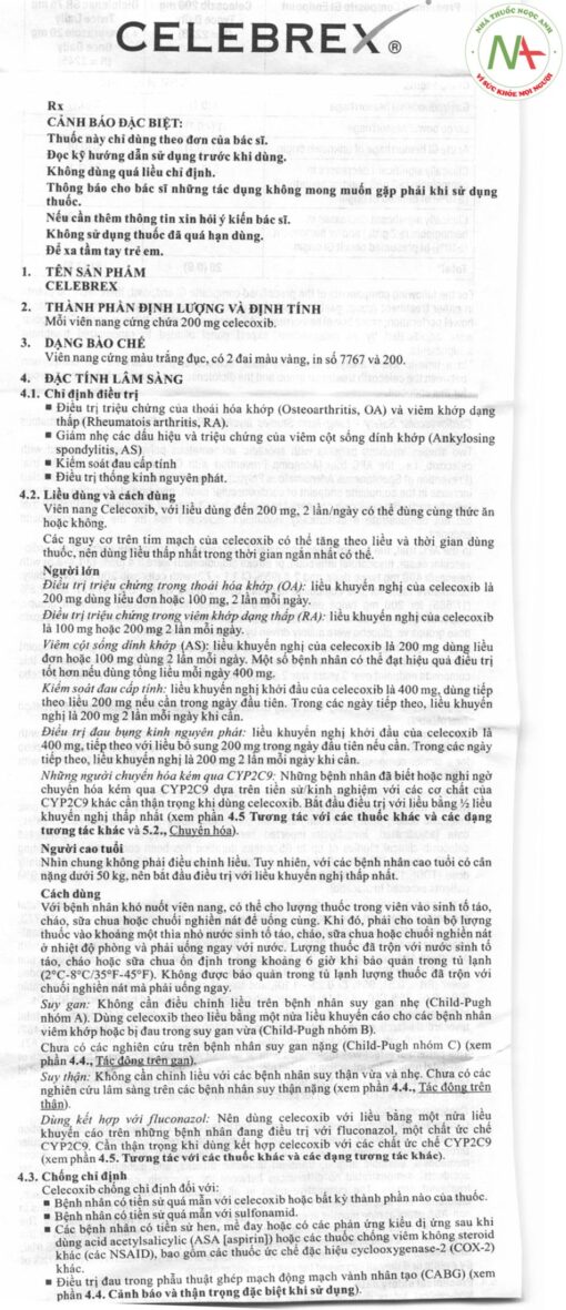 Xem đầy đủ file pdf của hướng dẫn sử dụng thuốc CELEBREX 200mg Pfizer tại đây