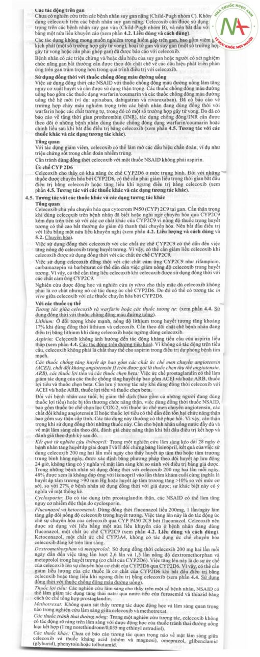 | Các chất cảm ứng CYP2C9 như rifampicin, carbamazepin, barbiturat | có thể làm giảm nồng độ của celecoxib trong huyết tương |