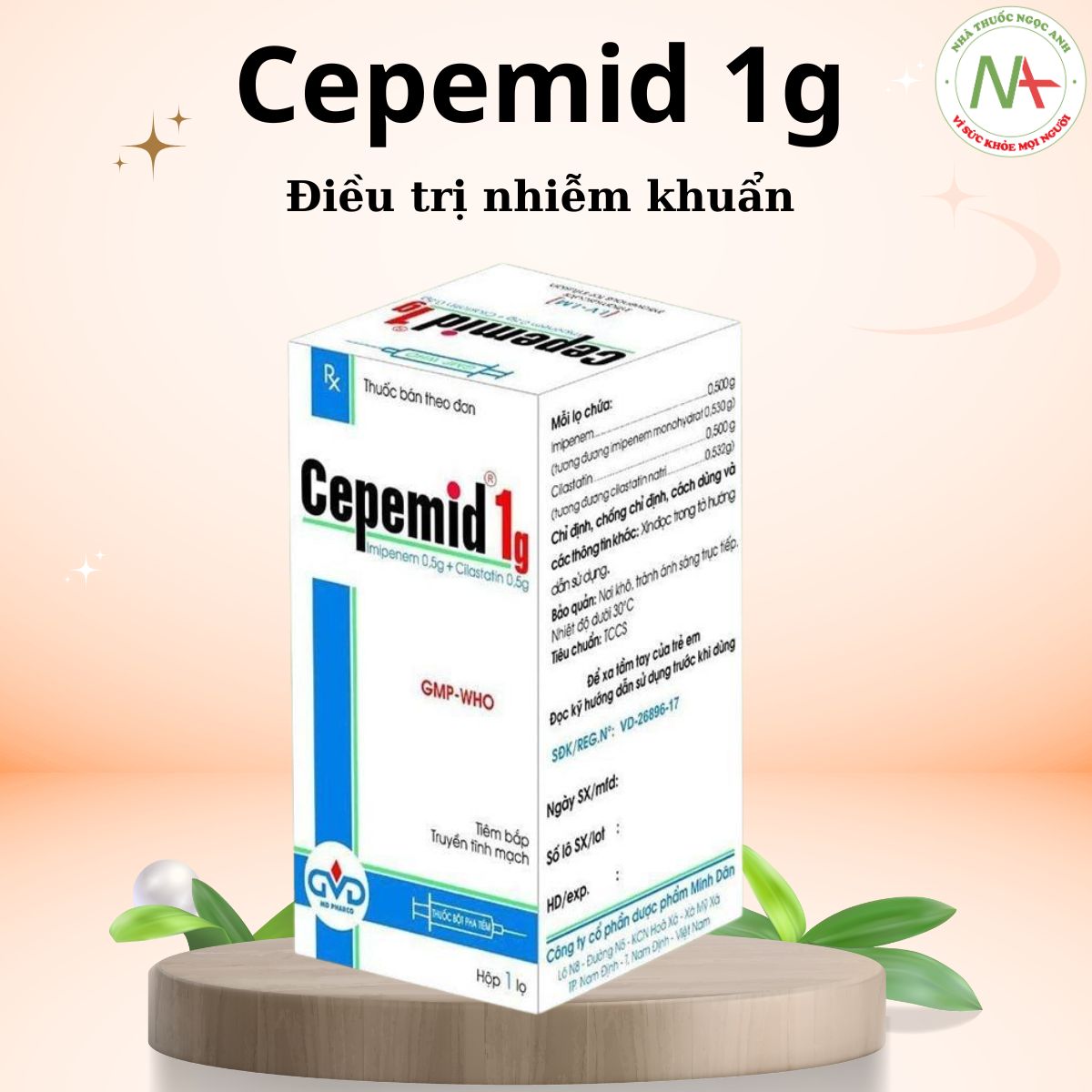- Thuốc Cepemid 1,5g có chứa hoạt chất Cilastatin, Imipenem, có tác dụng điều trị tình trạng nhiễm khuẩn được sản xuất bởi Công ty cổ phần dược phẩm Minh Dân