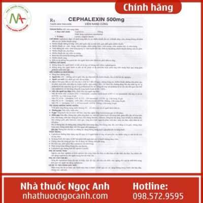 Tờ hướng dẫn sử dụng Cephalexin 500mg Vidipha. tải về tại đây.