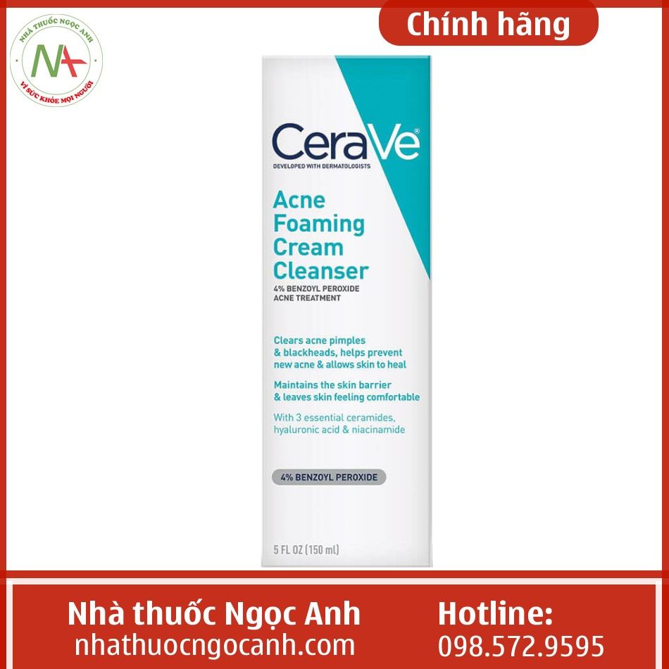 - Sữa rửa mặt Cerave Acne Foaming Cream Cleanser là một dược mỹ phẩm hydrat hóa, trị mụn, làm mịn da và làm sạch bề mặt của da mà không tạo cảm giác căng tức da.